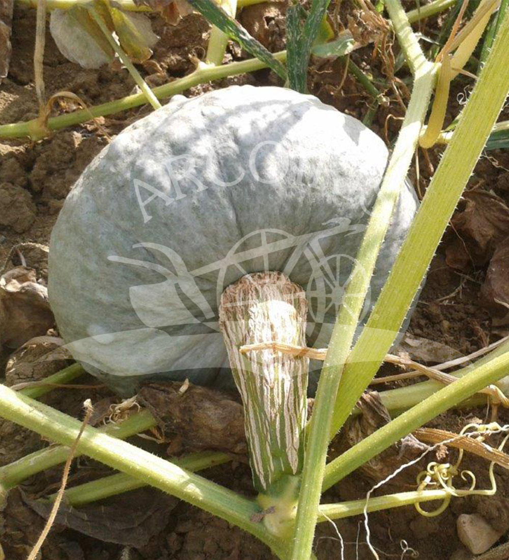 Varietà a maturazione tardiva. Frutti di grosse dimensioni di forma appiattita, buccia verde grigio con solcature. La polpa è di colore giallo-arancio, dolce, soda, farinosa e priva di fibrosità. Adatta per la conservazione invernale e ideale per la preparazione dei tortelli. 3-4 semi per grammo.