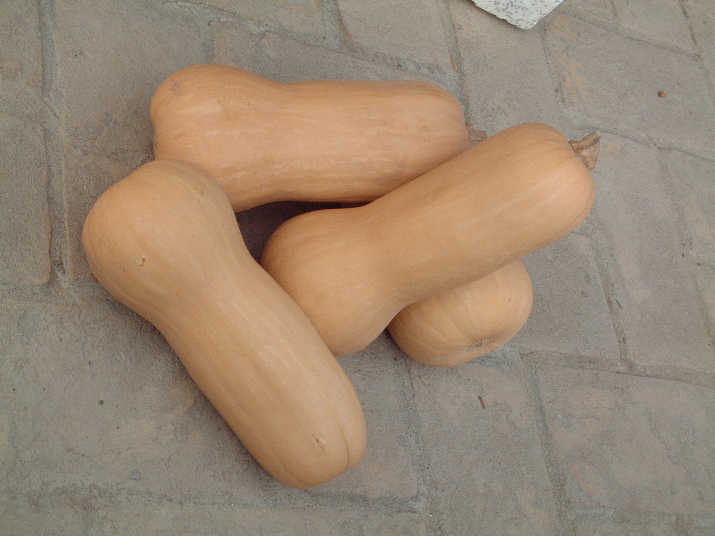 Frutto a forma di pera lungo 30-35 cm dal peso di circa 1 Kg. Buccia liscia colore nocciola chiaro. Polpa colore gialla, buon sapore. Numero di semi per g: 12-14.