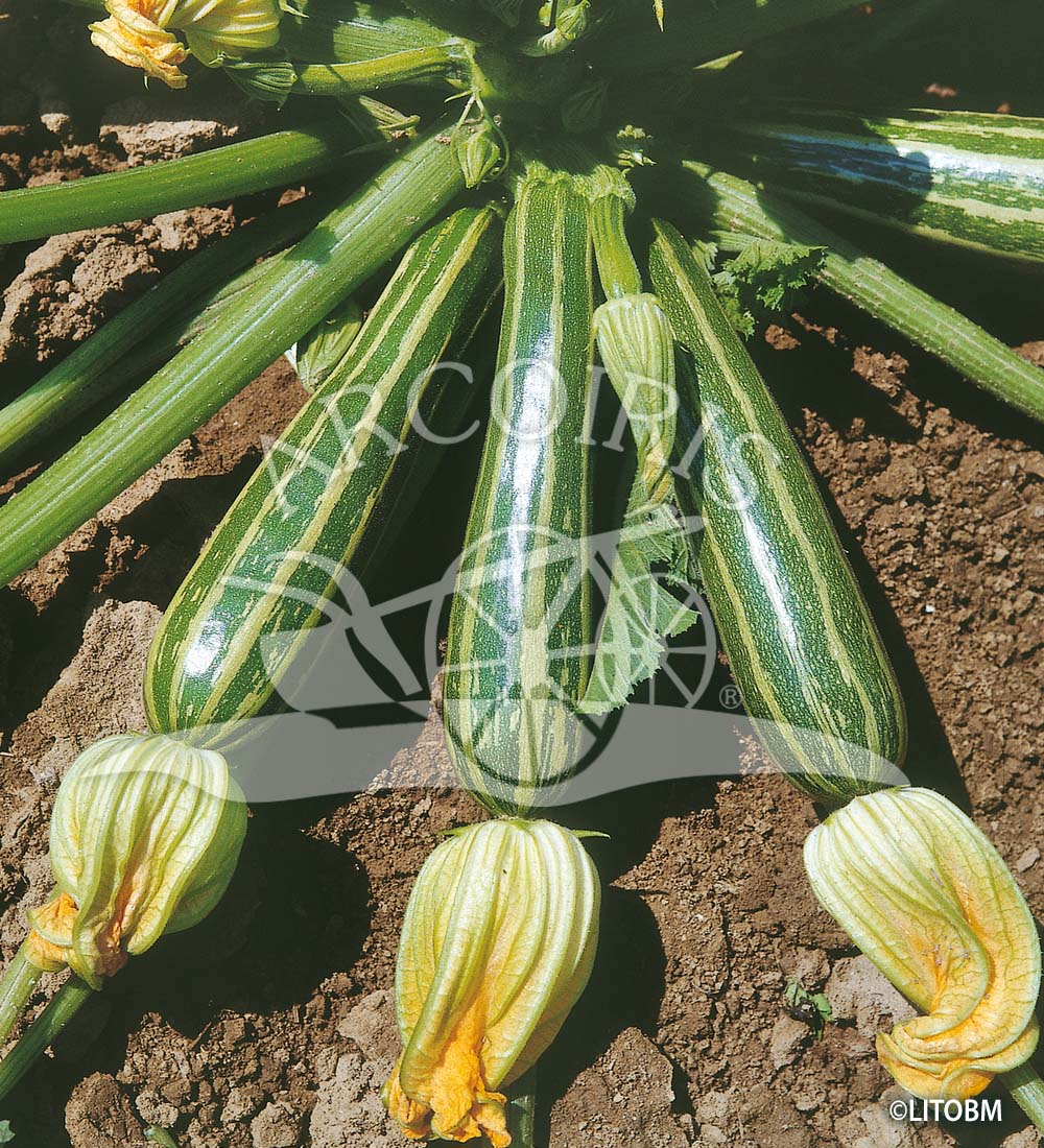 La pianta è cespugliosa e produce frutti cilindrici lunghi 22-24 cm, leggermente costoluti e di colore verde con striature chiare. Ciclo medio-precoce.