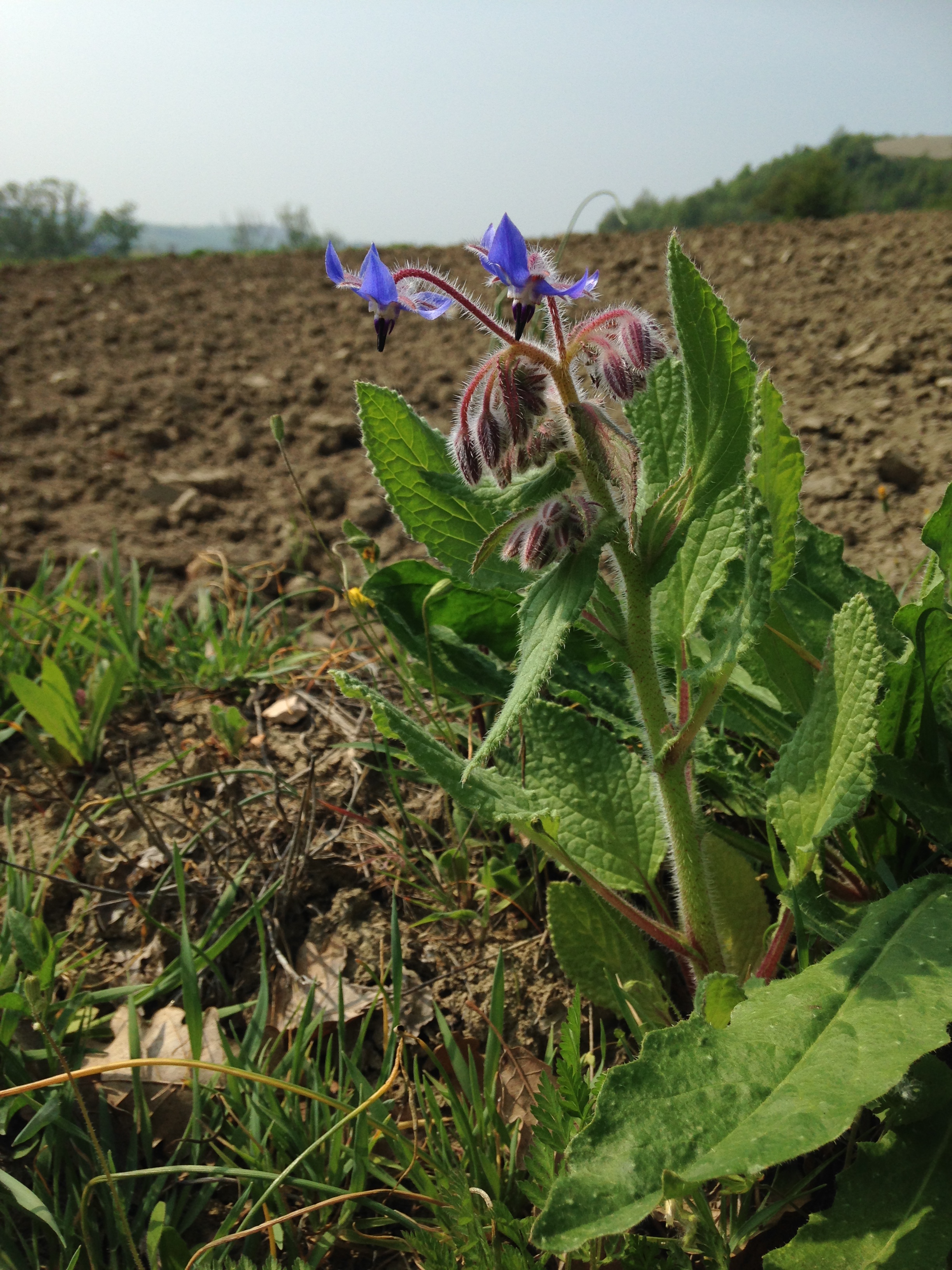 Pianta erbacea annua con fusto ramificato, acquoso, alta fino a 40-60 centimetri. I fiori stellati hanno la corolla rosa in boccio e azzurra alla fioritura. Fioriscono da aprile ad agosto. Pianta mellifera.
